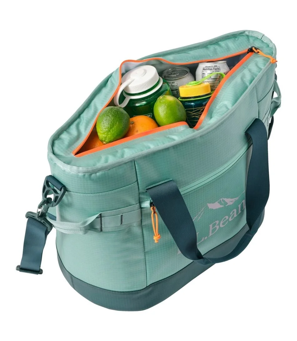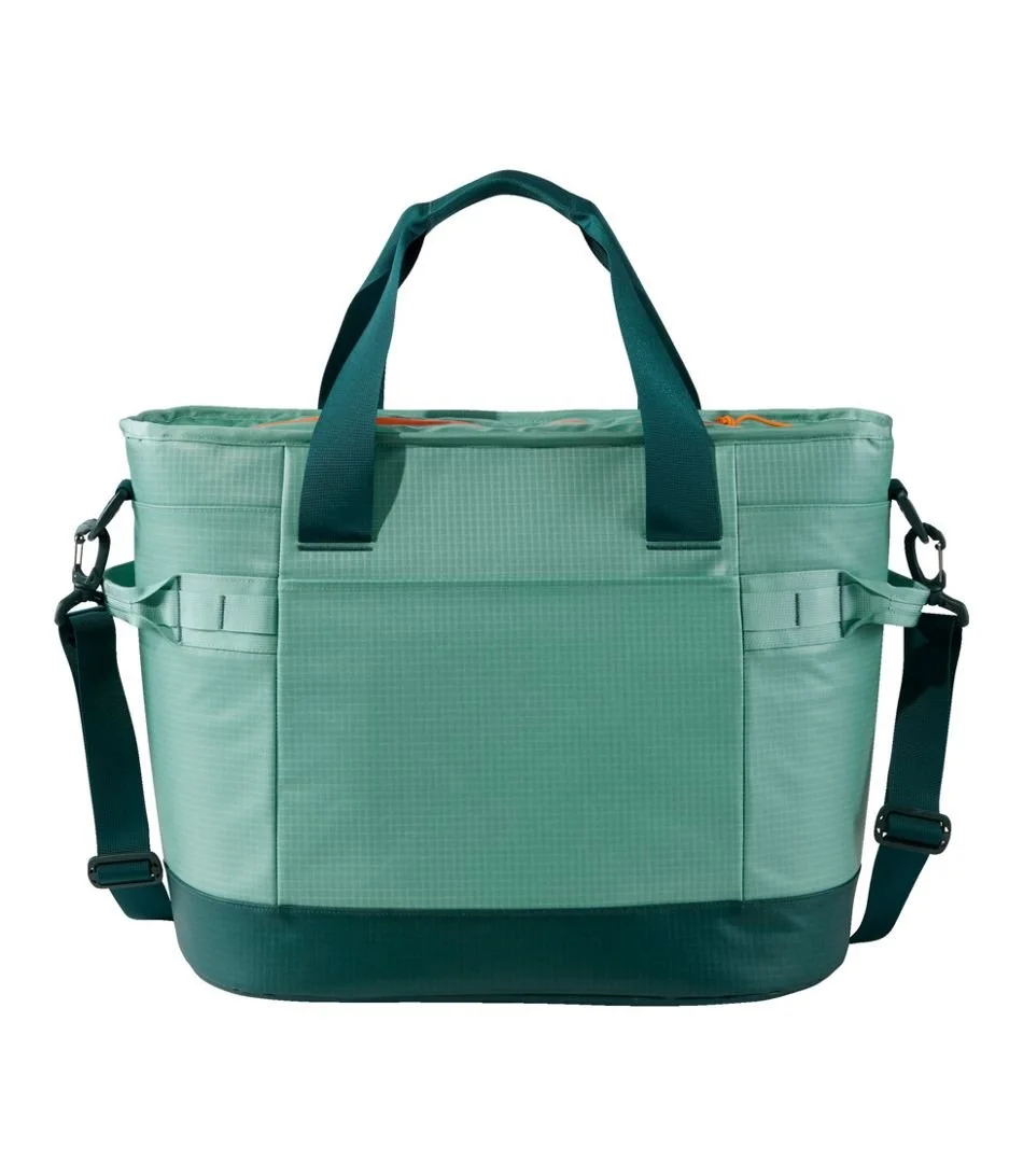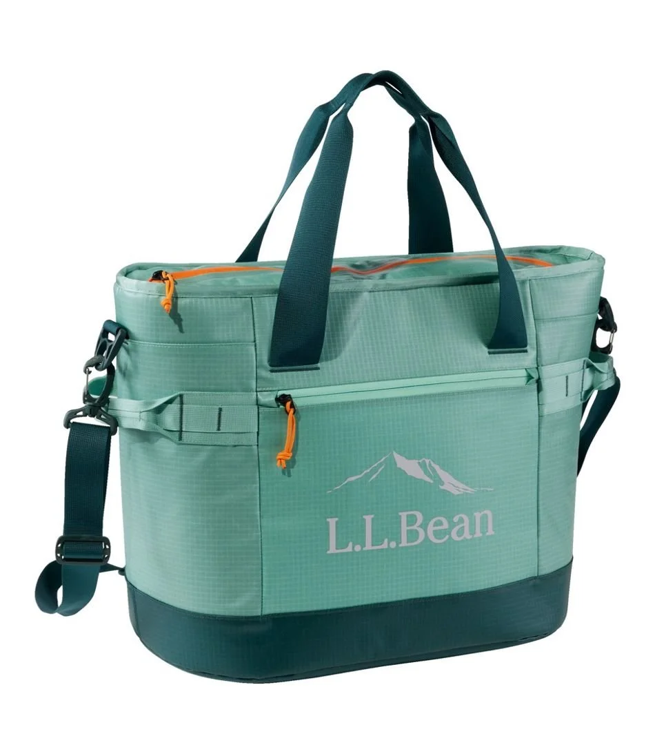 The L.L.Bean Adventure Tote Cooler is a versatile and durable cooler bag designed for outdoor activities, whether it's a picnic, beach day, or camping trip. Made from rugged, water-resistant polyester fabric, it features a leakproof, insulated interior that keeps food and drinks cold for hours. The cooler is lightweight yet spacious, with a capacity large enough to hold multiple beverages, snacks, and ice packs. Its sturdy zippered top ensures secure storage, while the reinforced handles make it easy to carry. Additionally, an exterior pocket provides quick access to small essentials. Stylish and functional, it's built to withstand various outdoor conditions.